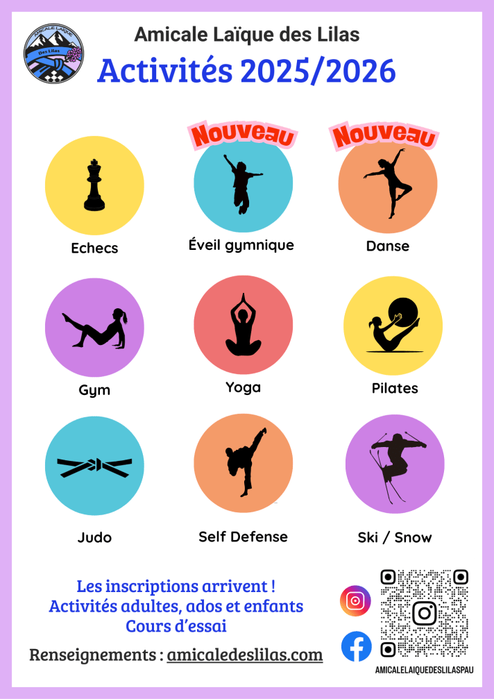 Les activités pour l’année scolaire 2025/2026 sont arrivées ! Venez les tester gratuitement en septembre (infos dans le menu Activités du site) !